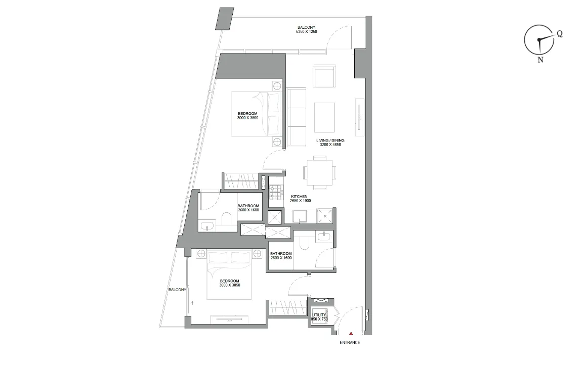 2 BEDROOM + 1 BALCONY